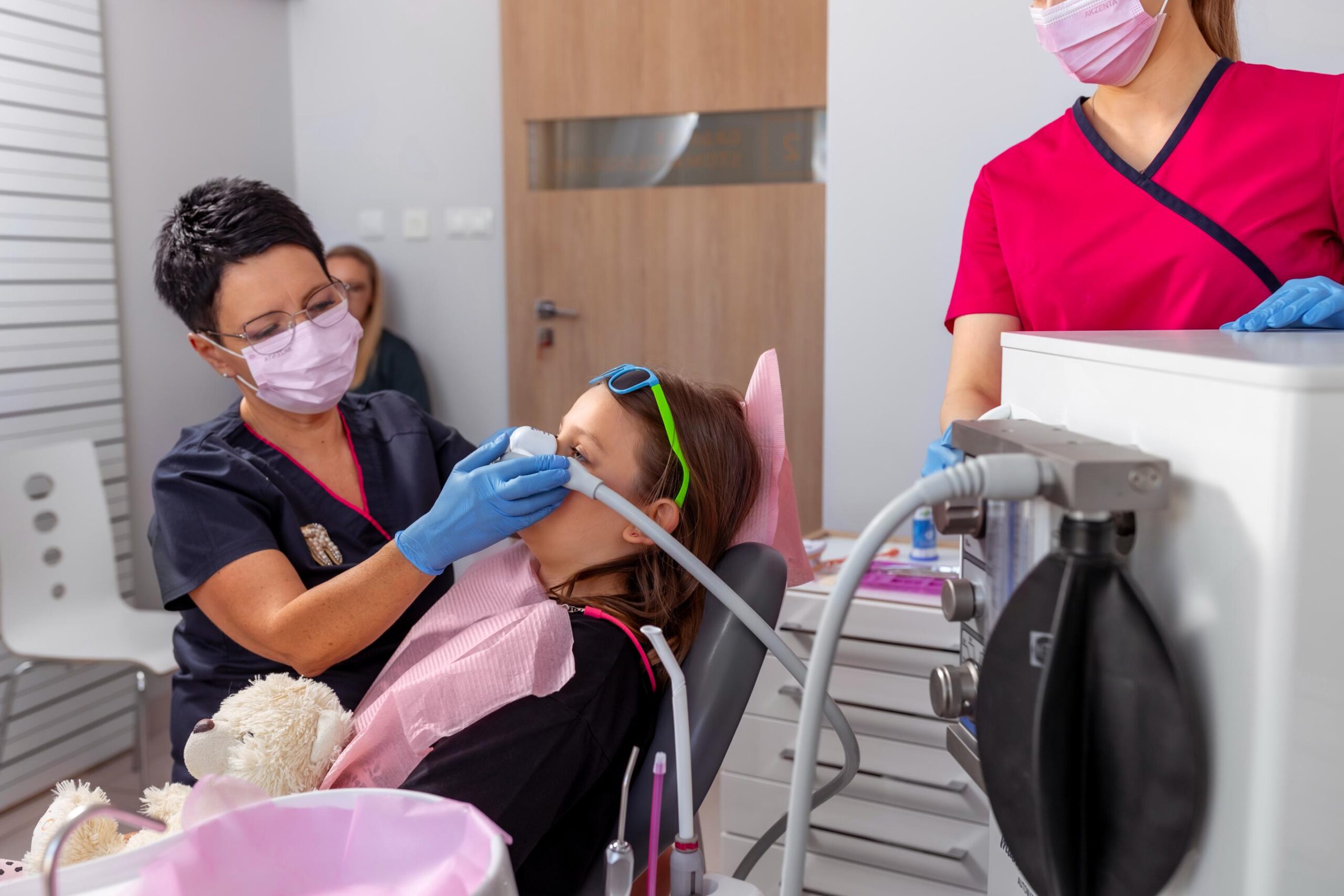 Przeprowadzamy również zabiegi z użyciem gazu rozweselającego. Wprowadza on Pacjenta w stan odprężenia, dzięki czemu zabieg przebiega bez stresu i w miłej atmosferze. Gaz rozweselający szczególnie dużą popularnością cieszy się wśród naszych najmłodszych Pacjentów.